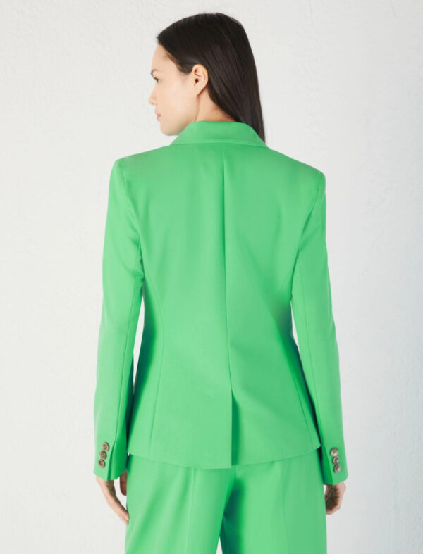 Blazer in tessuto contenente poliestere rigenerato o poliammide rigenerato, fibre provenienti dal riciclo di materiale plastico e fibre naturali riciclate e materie prime derivanti dalla cellulosa del legno, fibra ricavata nel rispetto del patrimonio forestale.