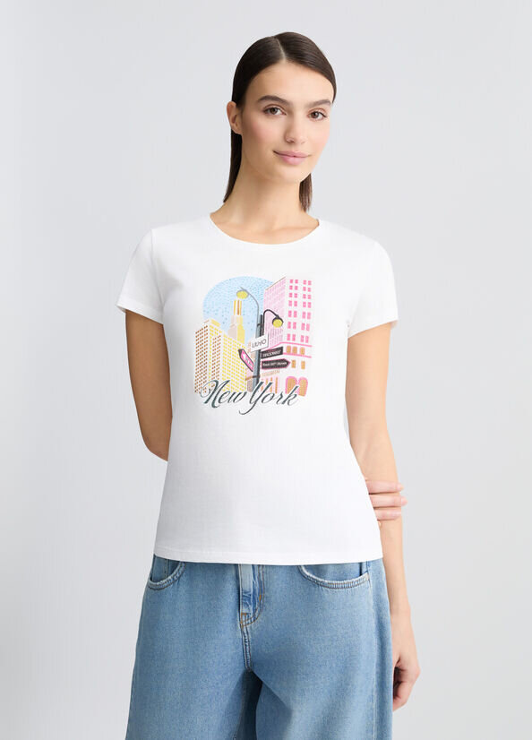 T- shirt in cotone con stampa e strass liu jo pe 25 art. wa5239