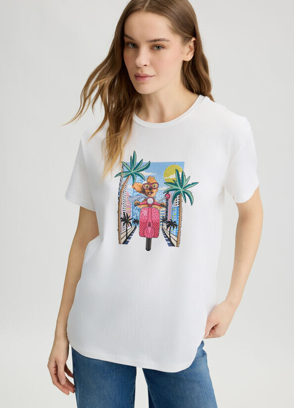 T-shirt con stampa e strass liu jo pe 25 art. wa5260