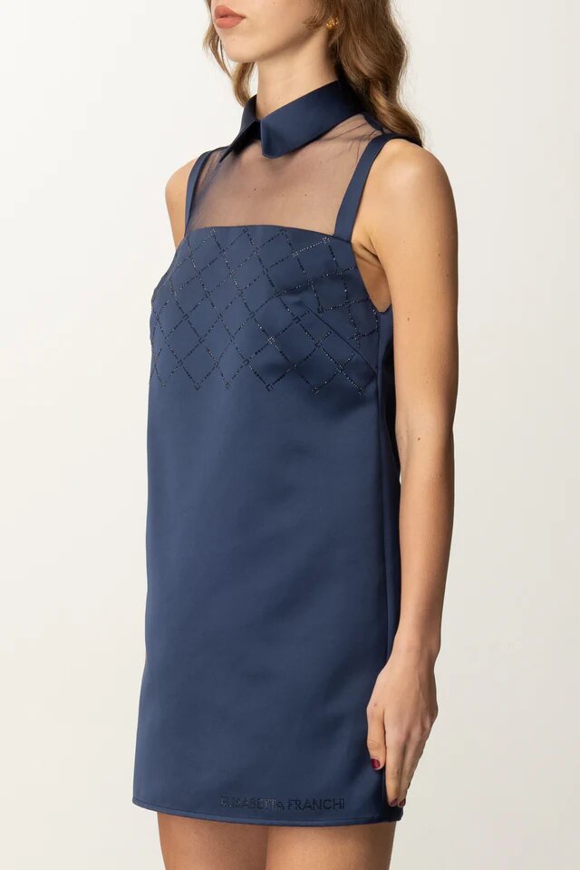 Mini Abito in Duchessa con Ricamo in Tulle e Stras Elisebetta Franchi pe25