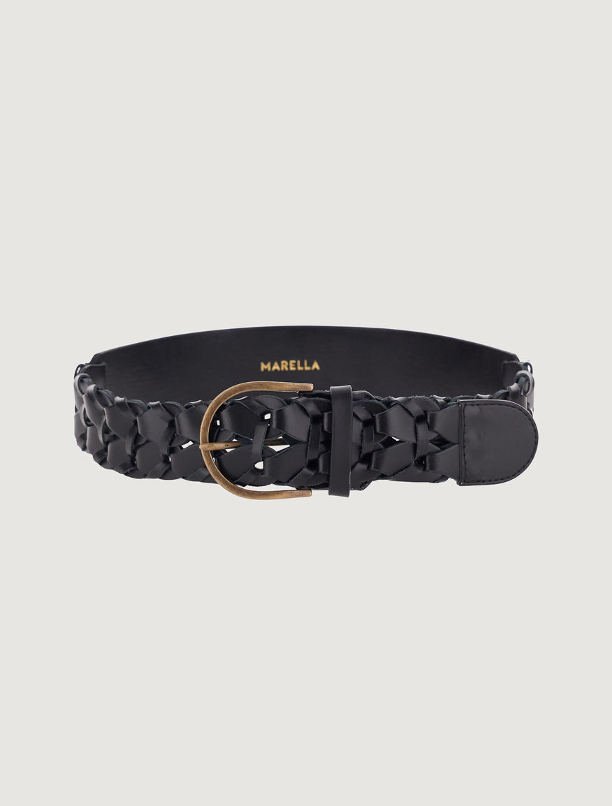 Cintura in pelle intrecciata, fibbia in metallo. Altezza 4,5 cm.