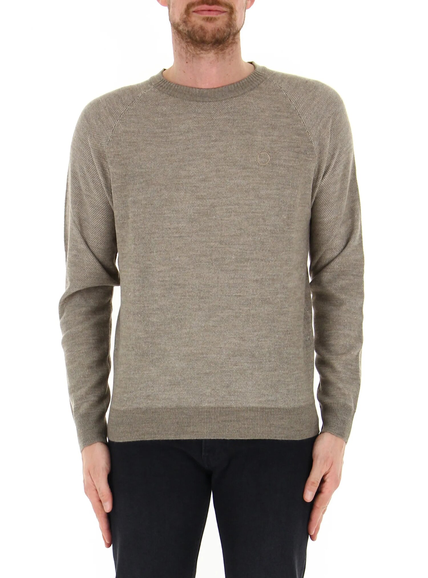 Maglione in misto lana girocollo, maniche lunghe, bordi lavorati a costine, ricamo logo sul petto