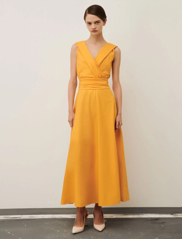 Abito lungo contraddistinto da una linea fit & flare. Tessuto contenente cotone proveniente da una catena di fornitori impegnati in unagricoltura a basso impatto ambientale.