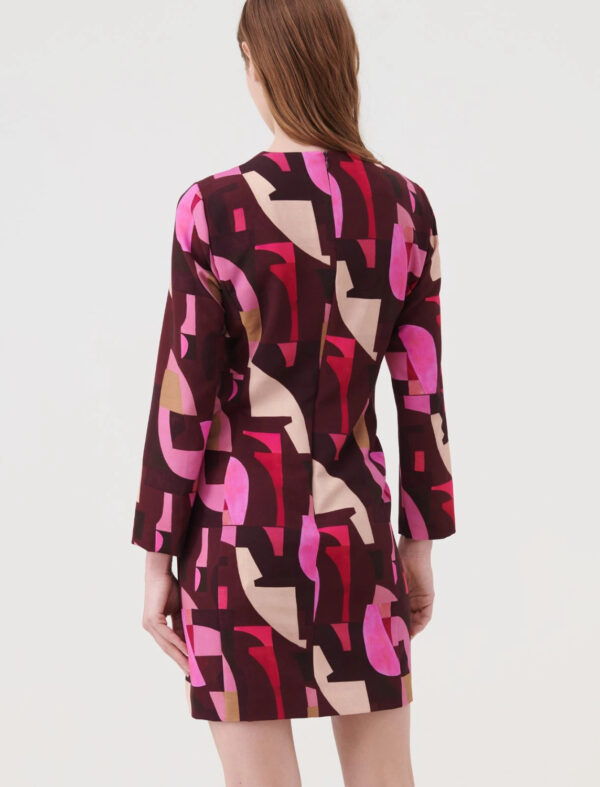 Abito corto in cady stretch, linea aderente. Scollo rotondo, maniche lunghe. Chiusura con zip invisibile sul retro. Foderato.