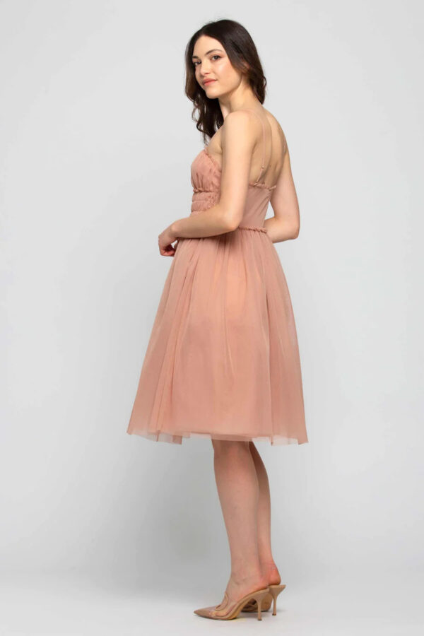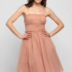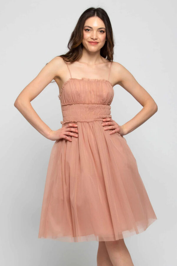 Abito romantico Gold Collection, dalla linea morbida. Il corpino con spalline sottili presenta delicate arricciature e la gonna è ampia e voluminosa grazie agli strati di tessuto di cui è composta. Per essere impeccabile indossa questo capo con i tacchi e abbina una clutch bag.
