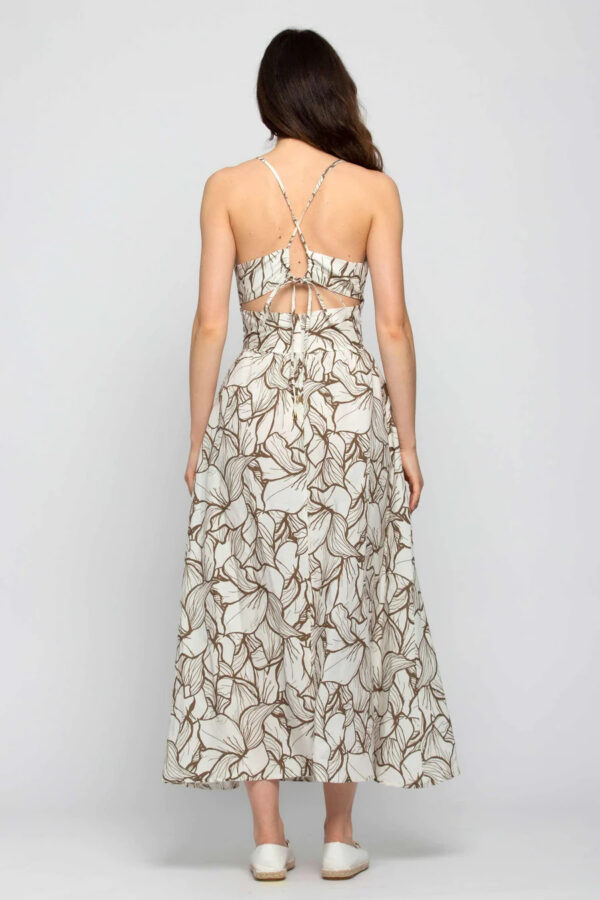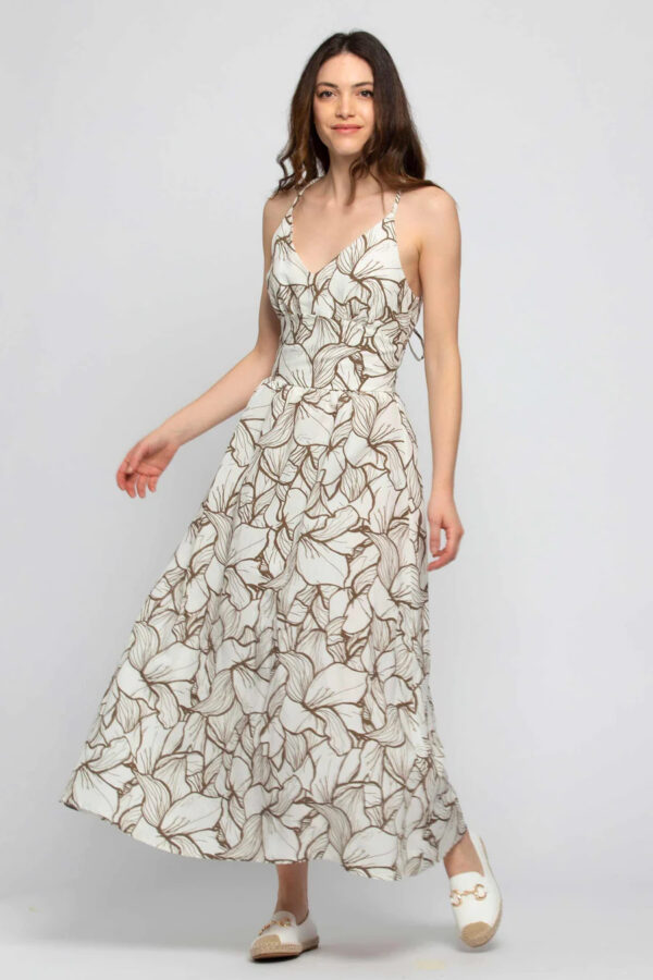 Abito in viscosa mista a lino con corpino stile impero, spalline sottili incrociate sulla schiena e gonna lunga e ampia. Il motivo floreale con colore a contrasto dona dinamicità a questo capo della Capsule Better Natural. Indossalo con sandali bassi e un cappello a tesa larga.