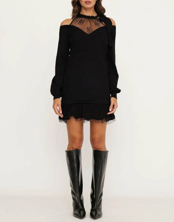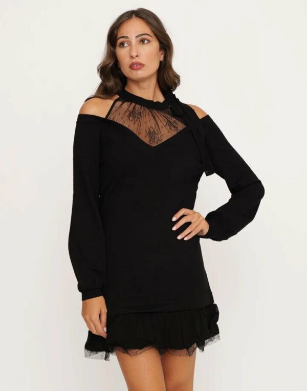 ABITO CORTO IN MAGLIA CON INSERTO IN PIZZO