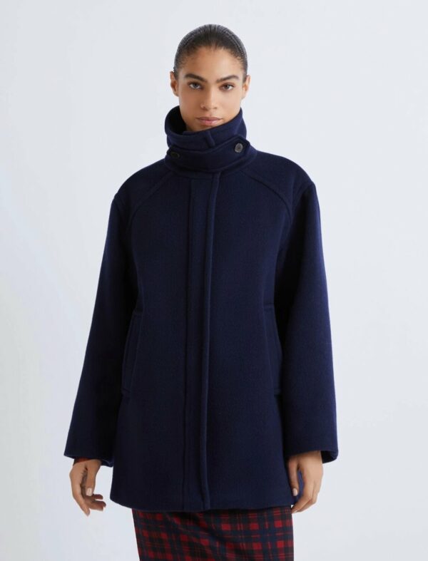 Giaccone in beaver double di misto lana soft con fodera interna