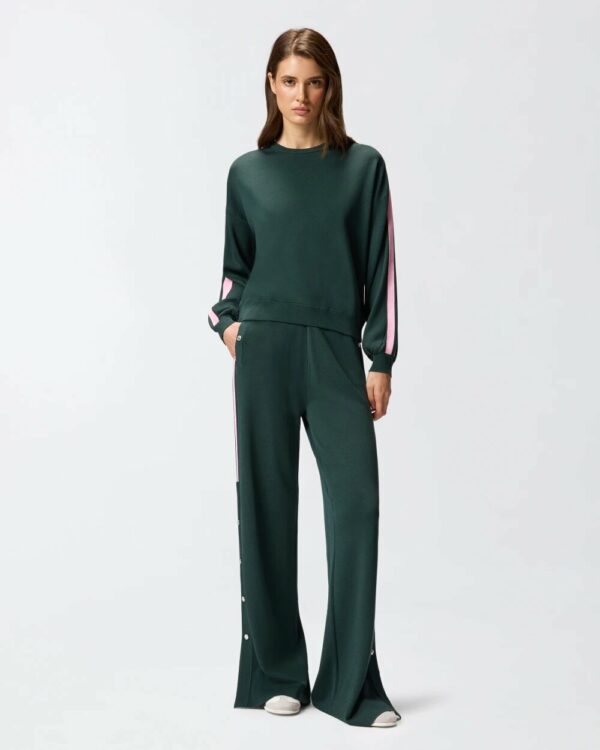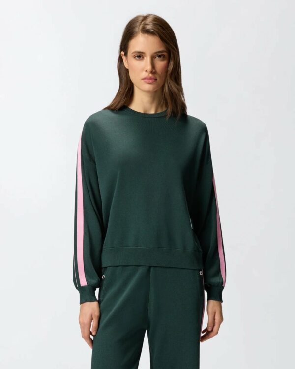 Felpa girocollo sportiva a maniche lunghe, realizzata in piquet effetto felpa tecnica, profilata con bande laterali a contrasto. Girocollo, orlo e polsini sono elasticizzati e lavorati a coste, mentre il tocco finale è dato dal maxi logo Love Birds impresso sul retro. Il capo è stato sottoposto a prove di finissaggio per ridurre al minimo la possibile formazione di pilling, garantendo una maggiore morbidezza e durabilità del tessuto. Abbina il design ai pantaloni dello stesso materiale per un look sportivo da manuale.