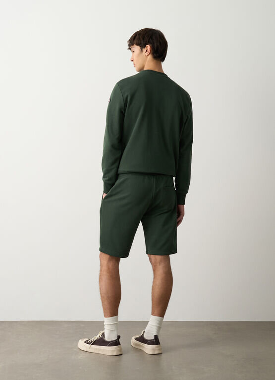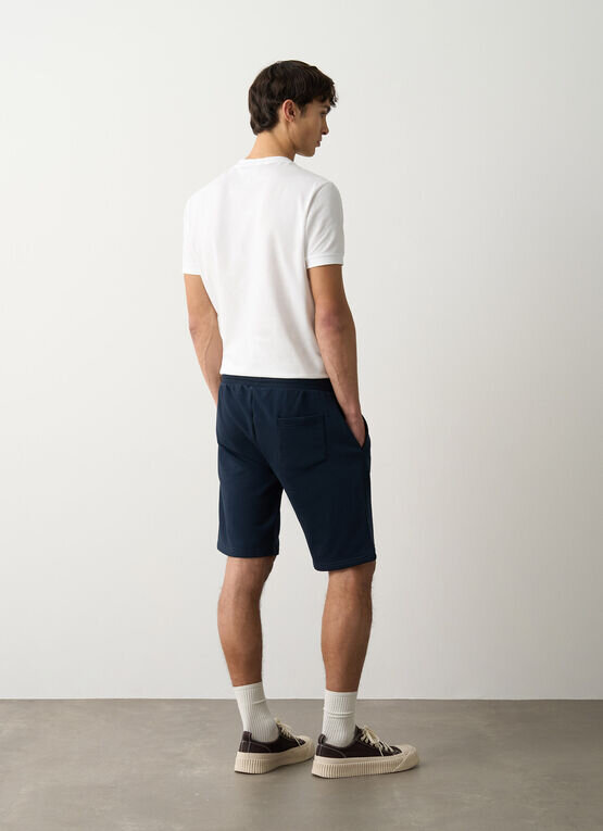 Pantaloni corti da uomo in morbida e fresca felpa non garzata misto cotone. Vita elasticizzata con coulisse regolabile per un fit personalizzato. Pratiche tasche laterali e ampio taschino posteriore. Un capo confortevole e versatile, perfetto per un total look sportivo.