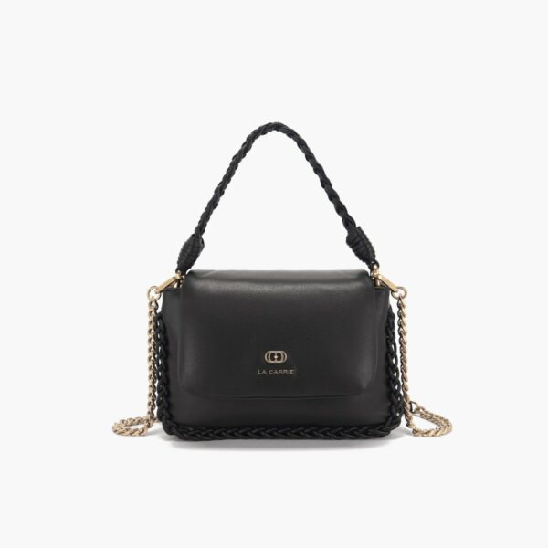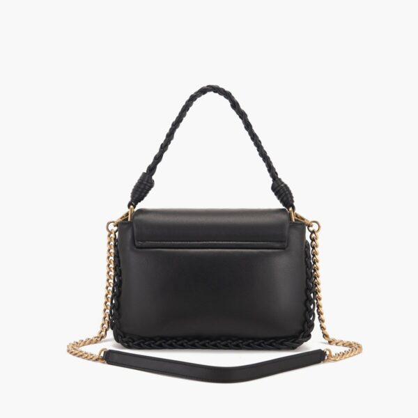 BORSA A MANO IN PELLE NAPPATA IMBOTTITA CON PATTA FRONTALE E TRACOLLA RIMOVIBILE.