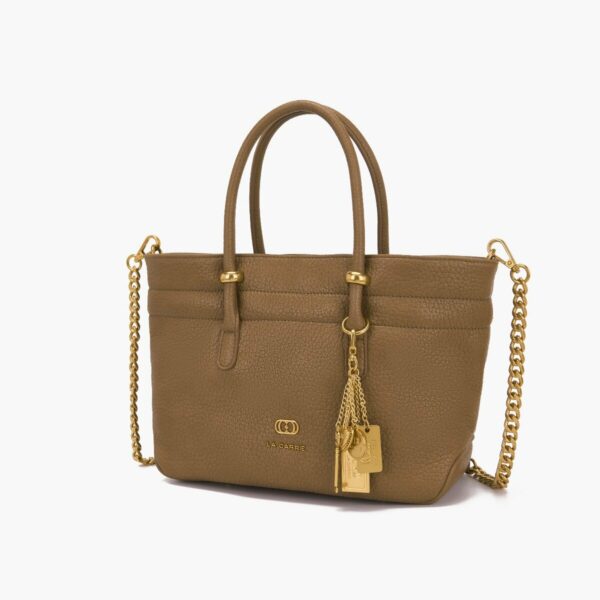 BORSA SHOPPING A DOPPI MANICI IN ECOPELLE MARTELLATA CON ACCESSORI DORATI E TRACOLLA RIMOVIBILI.