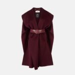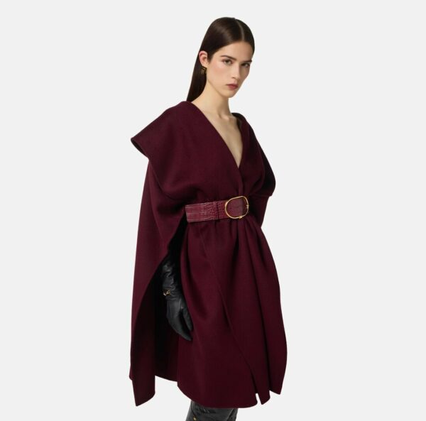 Mantella in panno di lana double sfoderata e dalla vestibilità over. I volumi avvolgenti sono definiti dalla cintura alta e in tono, con texture a stampa cocco che aggiunge carattere e completa di fibbia ad ardiglione con logo in metallo dorato.