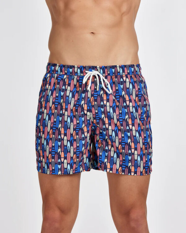Boxer mare realizzato in tessuto stampato a fantasia. Il capo presenta delle comode tasche laterali e un taschino posteriore, offrendo una sensazione di massima praticità e funzionalità. La vita elastica con coulisse garantisce una vestibilità regolabile e confortevole. Con lunghezza sopra al ginocchio, il capo è progettato per offrire massimo comfort durante i tuoi momenti di relax in spiaggia o in piscina.