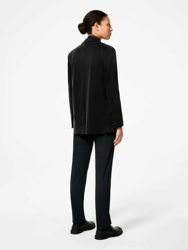 Con il suo taglio maschile deciso e moderno, questo blazer rivela una nuova interpretazione della sartoria classica, dove l'essenza formale si fonde con una visione attuale e sofisticata del vestire. La costruzione impeccabile è esaltata dal tessuto stretch con esterno in Cupro, dalla mano pesca e dalla luminosità setosa, che dona al capo un'eleganza fluida e avvolgente. I revers classici, la chiusura a due bottoni e le tasche laterali a filetto completano il design con discrezione e misura, riflettendo un'estetica essenziale ma ricercata. Pensato per un guardaroba versatile e raffinato, Cupro Boyfriend Woman Blazer si abbina perfettamente a una camicia sciancrata in SURFLEX®, per un ensemble che unisce rigore sartoriale e spirito contemporaneo, nel distinguersi con stile in ogni occasione.