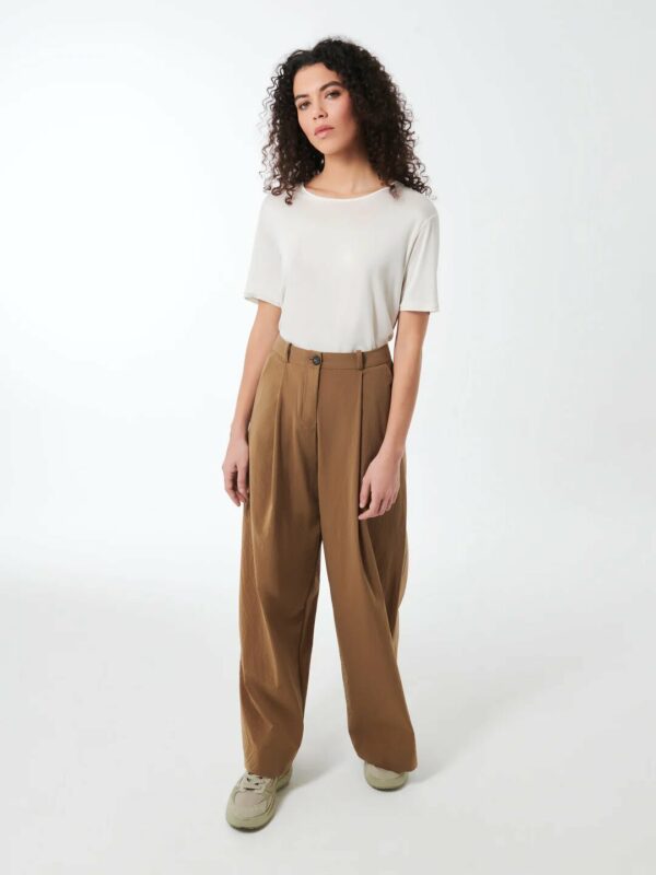 Modello continuativo di grande successo della Collezione, la creazione è realizzata nel pregiato tessuto Cupro, che dona un touch setoso e una sensazione particolarmente morbida sulla pelle. Dotata di un elegante girocollo e taglio spalla diritto, la T-shirt presenta un fit rilassato e un design semplice ma raffinato, che si distingue per la vestibilità morbida e confortevole. Cupro Wom Shirty è perfetta nella creazione di outfit per l'ufficio e per l'occasione serale quando è indossata sotto un blazer durante la stagione estiva, senza rinunciare al comfort e alla freschezza.