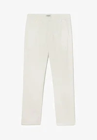 Pantaloni Nima loose chino, vita regolare, chiusura con zip, tasche a filetto posteriori, lunghezza alla caviglia. Gabardina leggera. Tintura in capo. Logo Dondup. Made in Italy