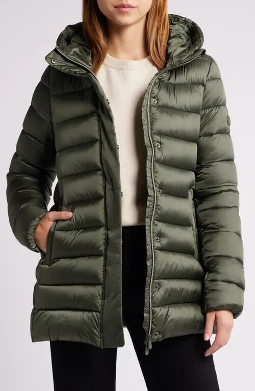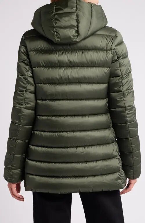 Il cappotto Drimia di Save The Duck è un piumino trapuntato a canali, progettato per respingere l'acqua. Realizzato in nylon ad alta densità ad asciugatura rapida, questo cappotto è estremamente leggero e presenta una finitura iridescente lucida. Presenta una chiusura frontale con zip a doppio cursore e patta antivento con bottoni automatici, un cappuccio fisso e tasche anteriori con zip nascosta. È foderato con isolamento PLUMTECH® che imita la sofficità del piumino, offrendo al contempo la facilità di manutenzione e i vantaggi termici tecnici dell'imbottitura sintetica. Il