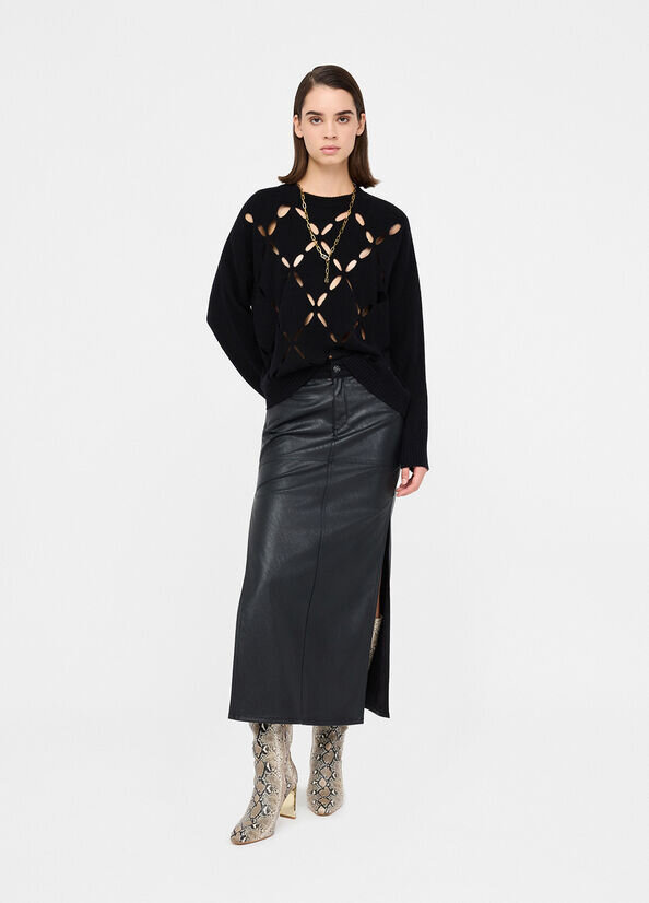 Un delicato disegno geometrico di losanghe dona leggerezza e trasparenza al capo. La sua trama ariosa e sofisticata è impreziosita da ricami gioiello per aggiungere un tocco glam ai tuoi look quotidiani.