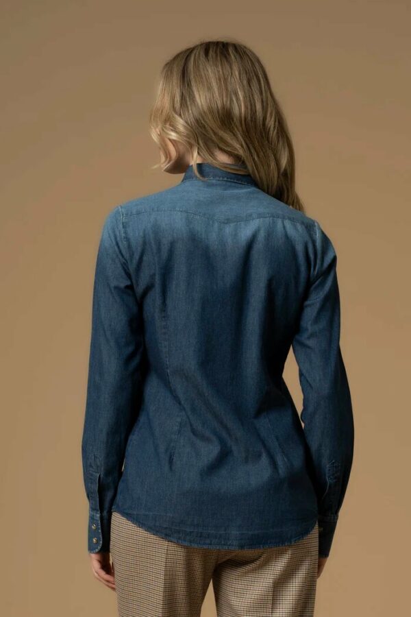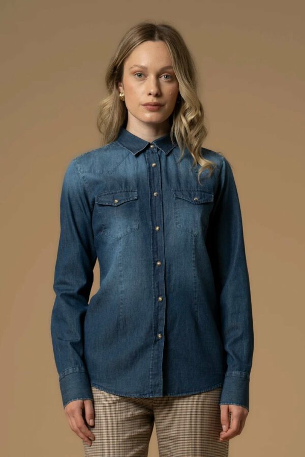 Questa classica camicia in denim di cotone è impreziosita da bottoni effetto madreperla sul davanti. Il capo presenta vestibilità regolare e colletto a punta.