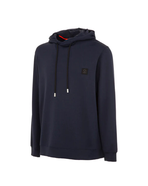 Maglia realizzata in tessuto tecnico elasticizzato, con patch SUNS sul lato cuore. Il capo presenta un comodo cappuccio con coulisse, offrendo una sensazione di massima praticità e funzionalità al capo. Le balze e i polsi in tessuto garantiscono una vestibilità comoda e confortevole, rendendo il capo adatto a molteplici occasioni.
