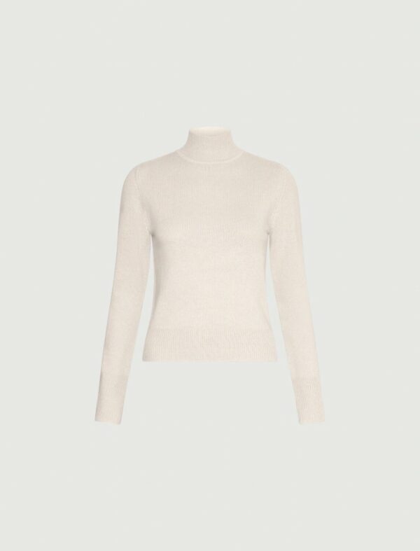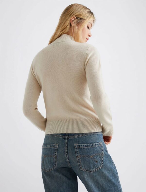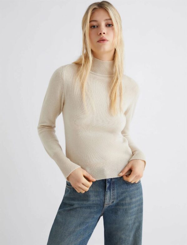 L'eleganza rilassata del lupetto in versione deluxe, con filato di misto cashmere caldo e morbido al tocco. La preziosità del design si legge nel gioco di calature sulla spalla e nel dettaglio di tubolare a contrasto sull'interno collo.