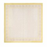 Perfetto da regalare o da annodare ai manici della borsa in un morbido fiocco, questo foulard conquista con la stampa monogram incorniciata da pennellate di blu.