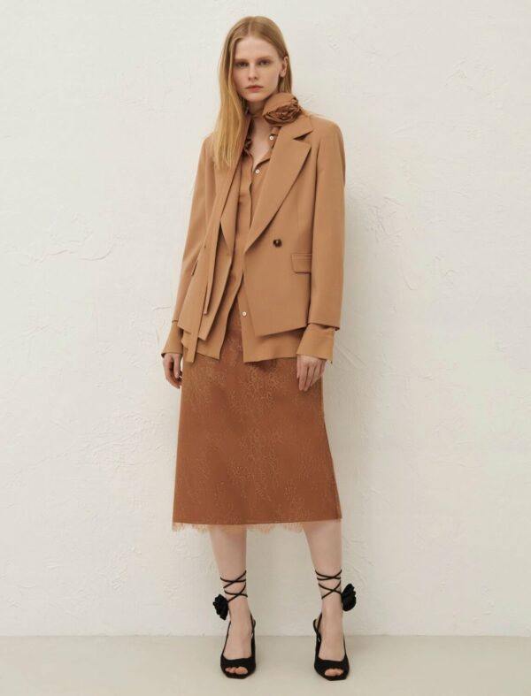 Talento formale e linee scivolate, in perfetto equilibrio: il blazer in gabardina disegna la silhouette e ti accompagna in ufficio o al party, giocando con lo styling.