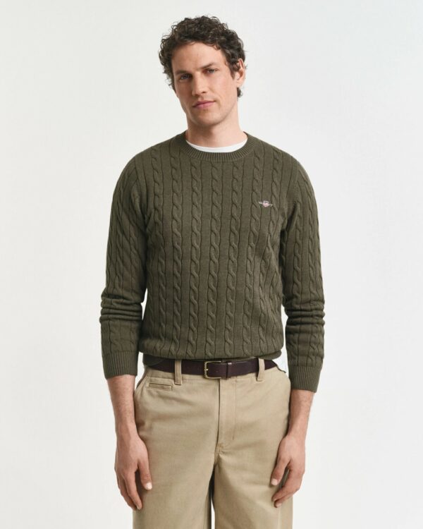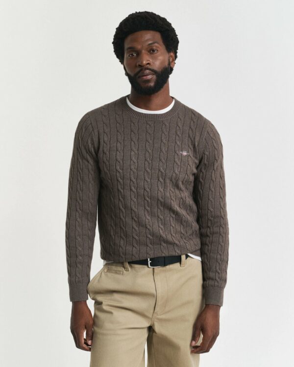 Questa soffice maglia in cotone con lavorazione a trecce su tutto il capo con vestibilità regular presenta il nostro classico girocollo. Un capo preppy essenziale, caratterizzato dal nostro iconico stemma GANT Archive ricamato sul petto e bordi a coste su fondo e polsini.
