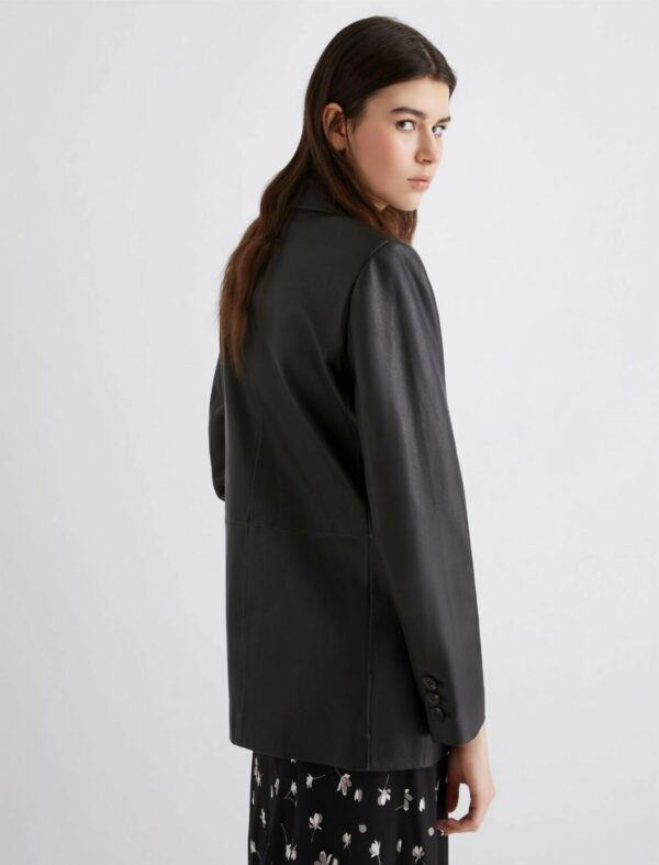 Il più urbano dei materiali, nel più raffinato dei tagli: nuovo blazer in pelle effetto vintage, con rever lungo lo scollo e chiusura con bottone. Provalo su un abito stampato o a contrasto con denim e top lingerie, il risultato sarà sorprendente.