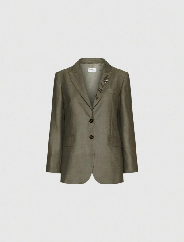 Il tocco scintillante dei cristalli sul rever trasforma un blazer in un capo da indossare anche nelle occasioni speciali. Provalo con un abito lungo e la pochette, il risultato sarà sorprendente.
