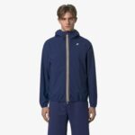 Jack è una giacca corta da uomo ideale per le mezze stagioni e con vestibilità slim, realizzata in tessuto tecnico elasticizzato, che segue i movimenti e protegge dal vento e dalla pioggia fino a 10000 colonne dacqua. L'interno è foderato con una membrana isolante decorata con lettering K-Way stampato all over in tonalità argento. Le tasche laterali con zip, il cappuccio avvolgente, i polsini e i bordi con inserti elastici sono dettagli funzionali che garantiscono aderenza e una vestibilità comoda e veloce.