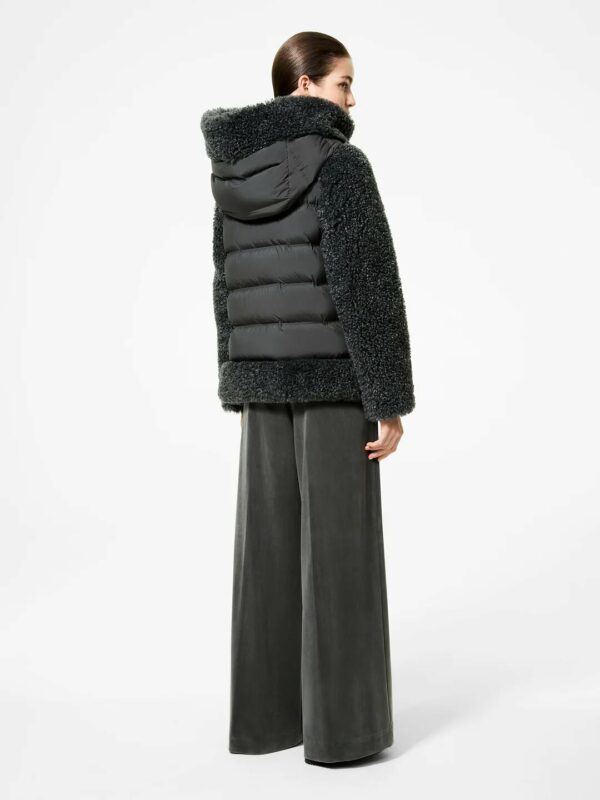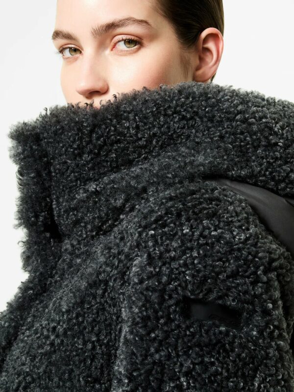 Il capospalla versatile e di grande carattere si distingue per la silhouette e la costruzione originale del davanti e delle maniche, impreziositi dalla eco pelliccia teddy calda e avvolgente. Il retro presenta i canali tubici che contengono l'imbottitura in morbida e calda piuma d'anatra, dal grande comfort e leggerezza. Il cappuccio, ampio e scenografico, combina le due texture avvolgendo il viso e conferendo al design un'allure unica e sofisticata. La lunghezza ai fianchi, le tasche invisibili e la chiusura a zip con doppio cursore nascosta dalla pattina sono le note distintive che esaltano il carattere minimalista e la funzionalità. Perfetto per uno stile sporty chic, Lamb Hybrid Hood Wom Jkt si dimostra perfetto nell'affrontare con eleganza le giornate più fredde dell'inverno.