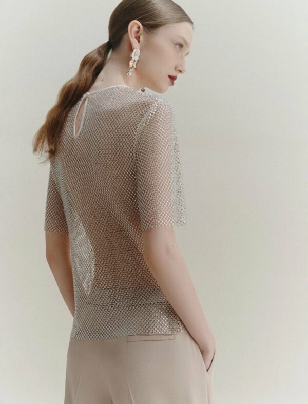 T-shirt in rete tecnica con strass
