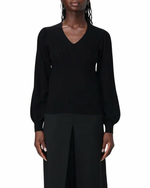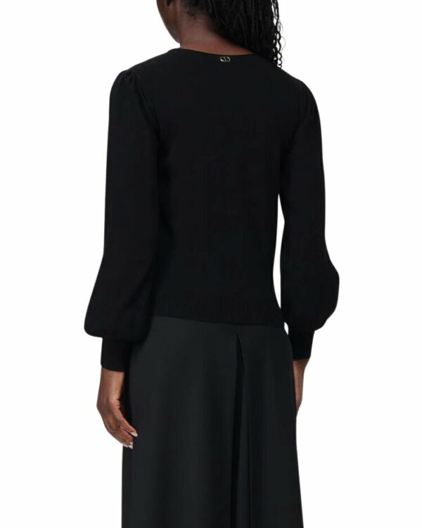 Maglia Twinset collezione fall winter 2024/2025. Maglia scollo V con costine sul davanti, maniche lunghe e spalle leggermente a palloncino.
