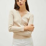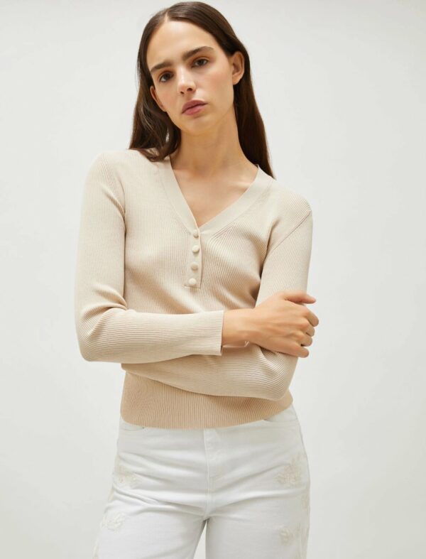 Scollo a V ampio con calature e bottoni ricoperti