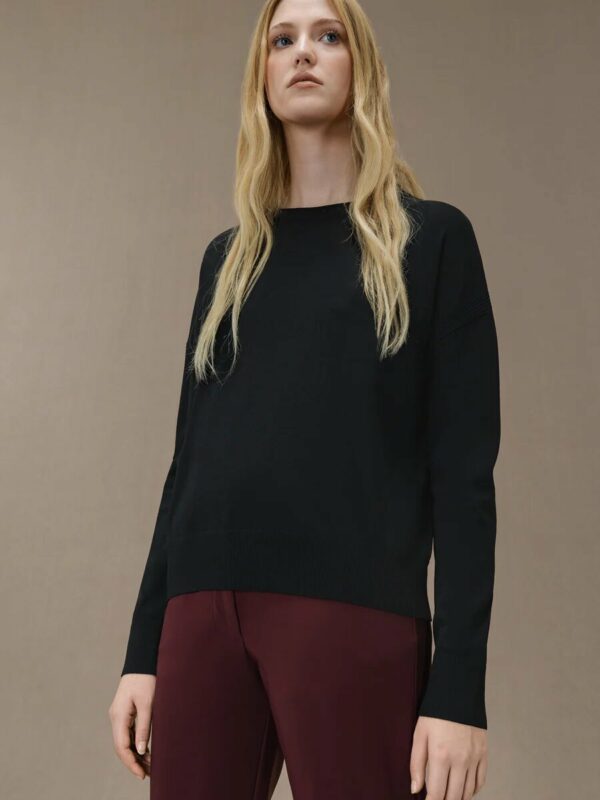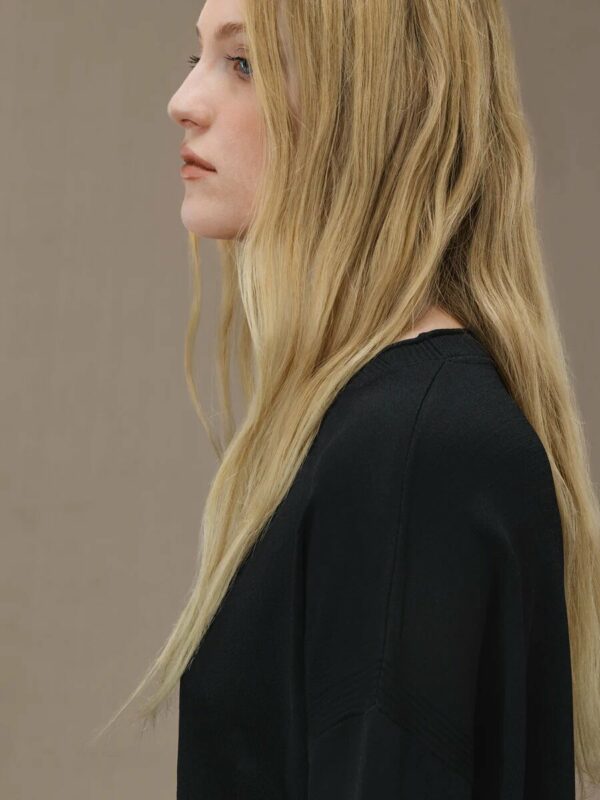 La maglia girocollo monocroma dallo stile classico e nitido abbraccia gli outfit casual di tutti i giorni con essenzialità e morbidezza. Il comfort del fit rilassato è assecondato dal morbido filato premium di viscosa stretch , di grande finezza. Disponibile nei toni neutri del beige e del nero, questo capo essenziale per la mezza stagione si distingue per versatilità, nel valorizzare gli abbinamenti accattivanti con capi vivaci e fantasiosi.