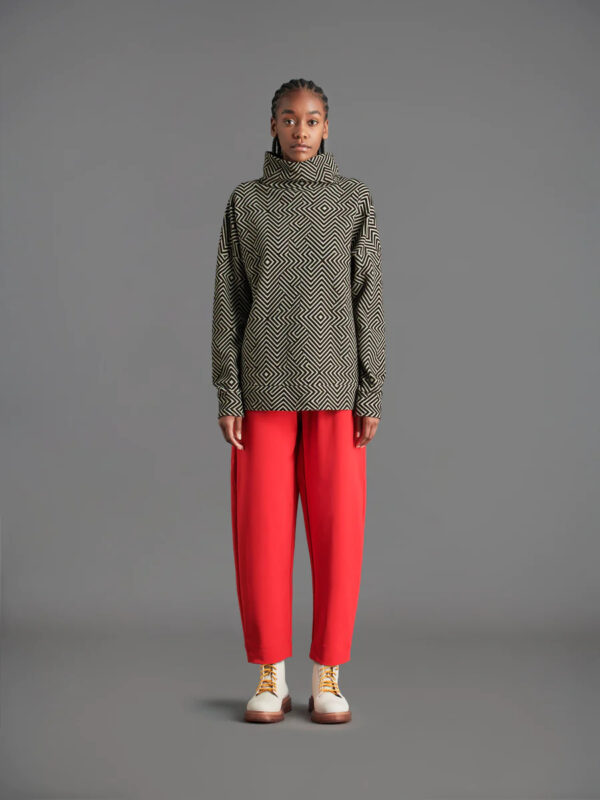 La felpa combina armonicamente attitudine dinamica e ricercatezza dei dettagli. Il modello esibisce un design asciutto e movimentato dallesclusiva texture Razzle Dazzle MAXI a monogramma, con stampa flock all over. Morbido e confortevole, il capo di mezza stagione si caratterizza per il tessuto stretch e traspirante ed è contraddistinto dal collo alto XL, che diventa un estroso dettaglio deleganza. Il taglio boxy è impreziosito dal logo nero a microiniezione sulla manica sinistra e si abbina con facilità un pantalone con tinte a contrasto.