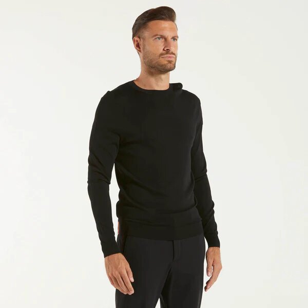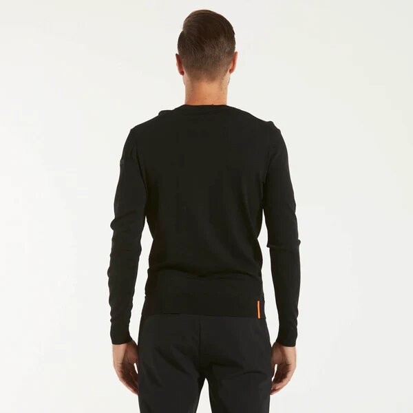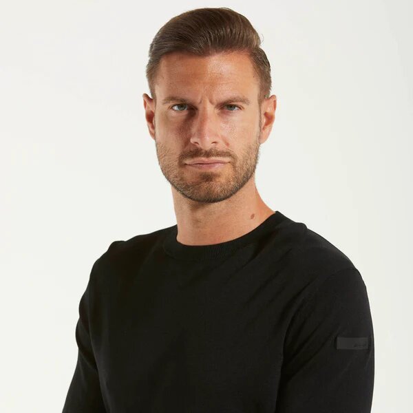 L'inconfondibile taglio a sella delle maniche lunghe e la rifinitura ad ampie coste inglesi elasticizzate del colletto risvoltato, dei polsi e del fondo donano un'allure dinamica a questo pullover girocollo realizzato in maglia di cotone. Consistente e morbida al tatto, la maglia monocroma dal fit regolare è un capo passepartout per la mezza stagione, perfetto per il tempo libero e nel weekend. Completa senza sforzo un pantalone cargo o cinque tasche nella creazione di diversi look casual. Logo a microiniezione nero sulla manica sinistra.