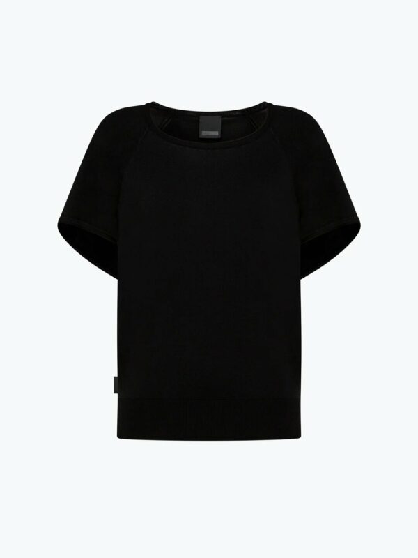 La maglia monocroma a maniche corte è realizzata in morbido filato di cotone e viscosa a lavorazione vanisé, dalla texture leggera e fluida. Il design rilassato e moderno è caratterizzato da un girocollo morbido e spalle abbassate, che ne esaltano la vestibilità comoda e disinvolta. Il capo è fresco e confortevole, ideale per il giorno e il tempo libero. Può essere abbinato a pantaloni cargo, o indossato sotto un Boyfriend Blazer per un tocco di eleganza informale a un look casual chic.