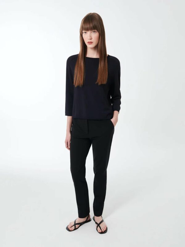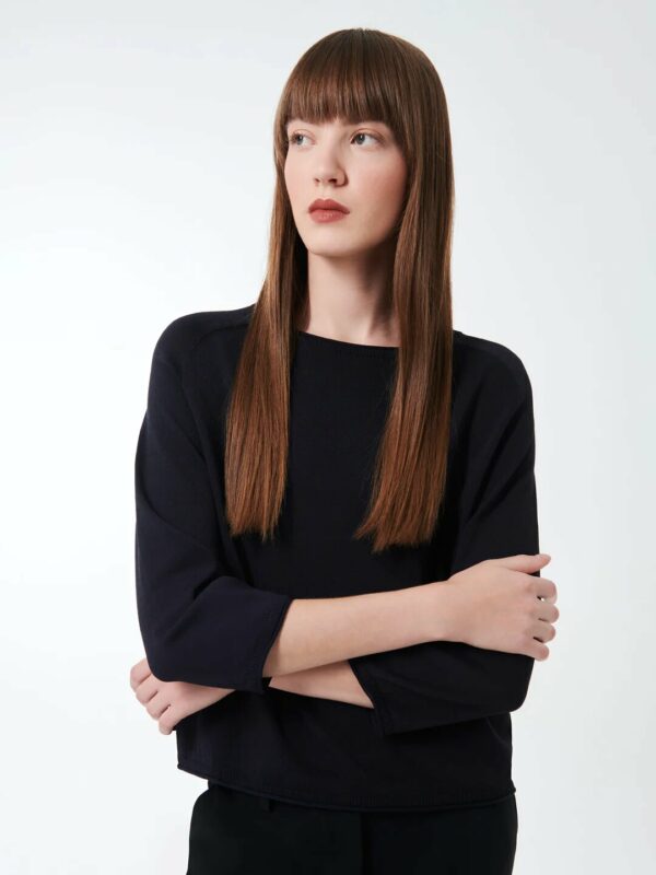 Il pullover monocromo a maniche lunghe esprime un'eleganza naturale, con le sue linee essenziali. Realizzato in una morbida maglia di cotone intrecciata con viscosa stretch in lavorazione vanisé, la creazione presenta un ampio girocollo e una vestibilità morbida e fresca. Rifinita con dettagli di pregio come la lavorazione a coste sul colletto, i polsini e il fondo ampio, è una scelta sofisticata e versatile. Maxell Round Wom Knit oscilla in perfetto equilibrio tra casual ed elegante, nel diventare il protagonista di look informali, ideali per la città, o un weekend al mare.