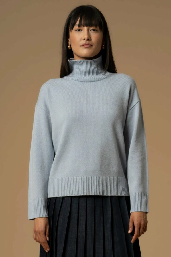 Il design classico di questa maglia è valorizzato dal collo alto a costine che regala un piacevole accento glam chic al capo. Questo modello, perfetto per il daily look, presenta bordi a costine e vestibilità regolare.