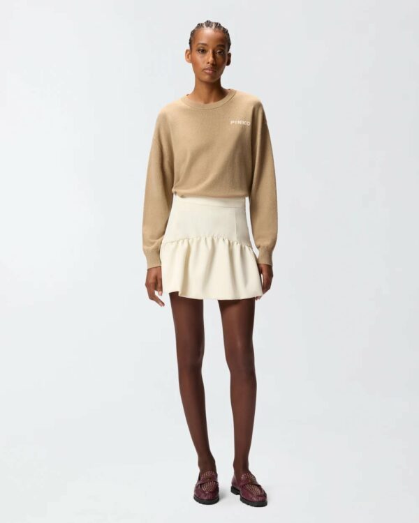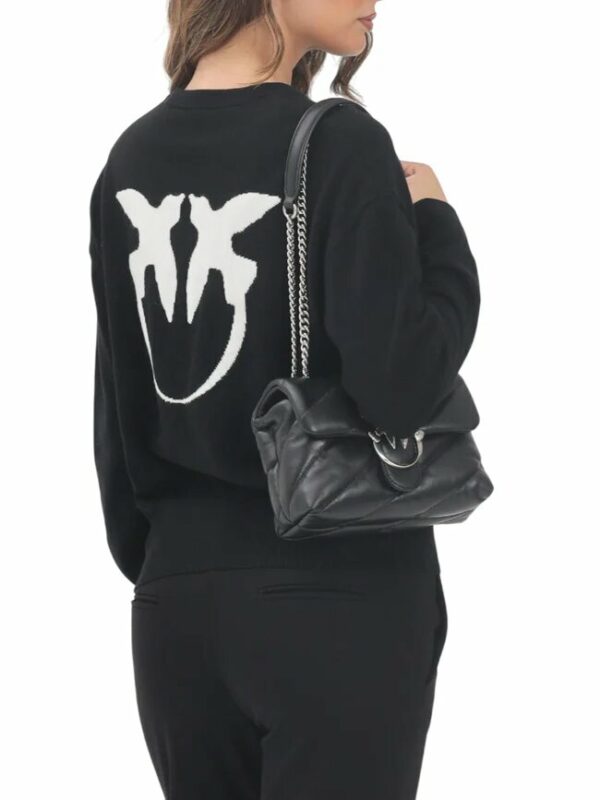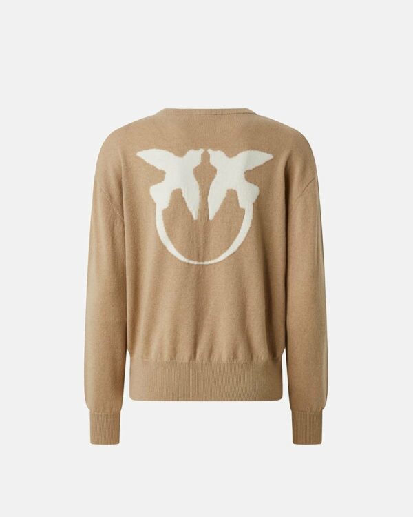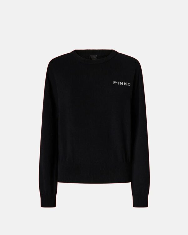 Maglione girocollo a maniche lunghe in pregiato misto lana e cashmere. L'inimitabile stile del brand viene espresso al massimo in questo capo, arricchito dal maxi logo Love Birds sul retro e dal logo lettering PINKO a contrasto sul davanti, lato cuore. Il capo è stato sottoposto a prove di finissaggio per ridurre al minimo la possibile formazione di pilling, garantendo una maggiore morbidezza e durabilità del tessuto. Il design è completato da girocollo, orlo e polsini lavorati a costine.