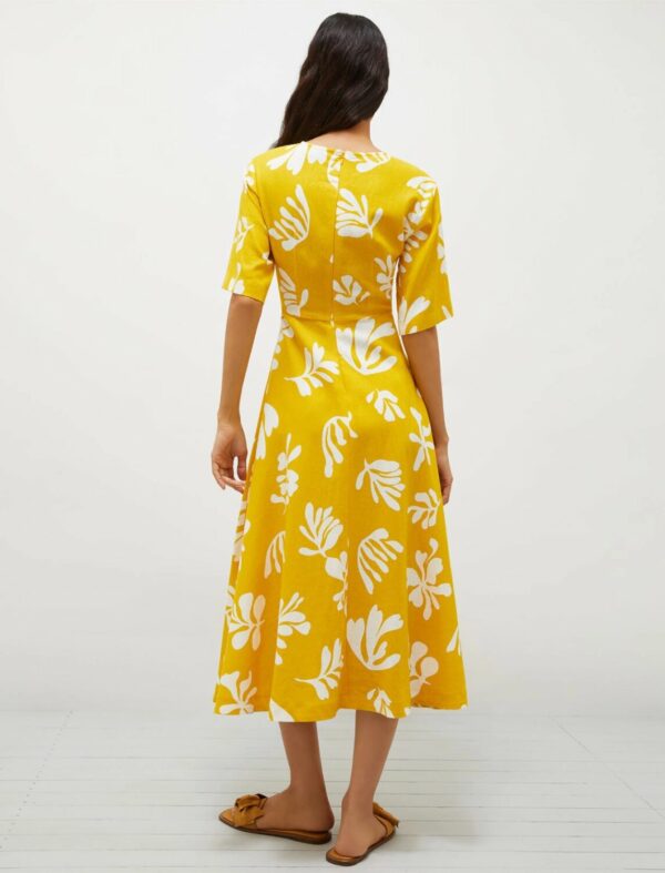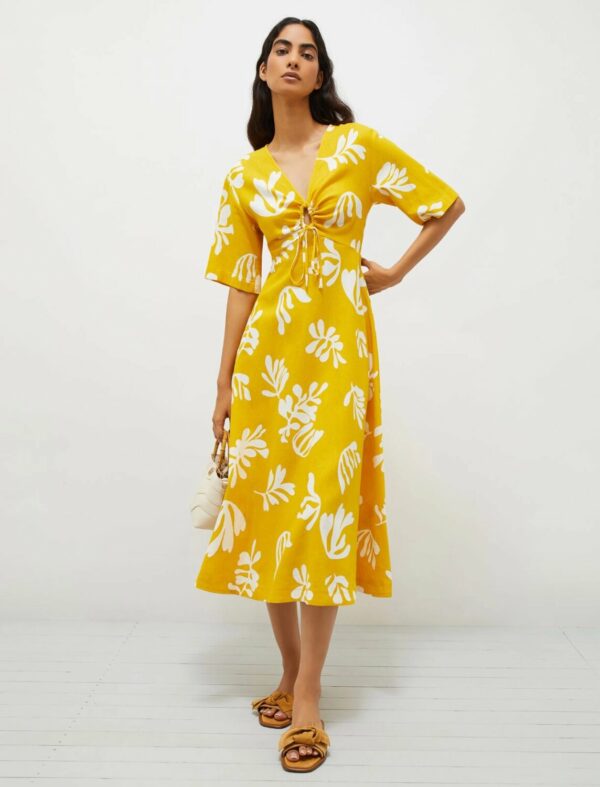 C'è un gesto semplice che ti fa sentire subito bella: indossare questo abito in misto lino con una stampa dal mood lussureggiante. Silhouette in evidenza con i laccetti regolabili sul davanti.