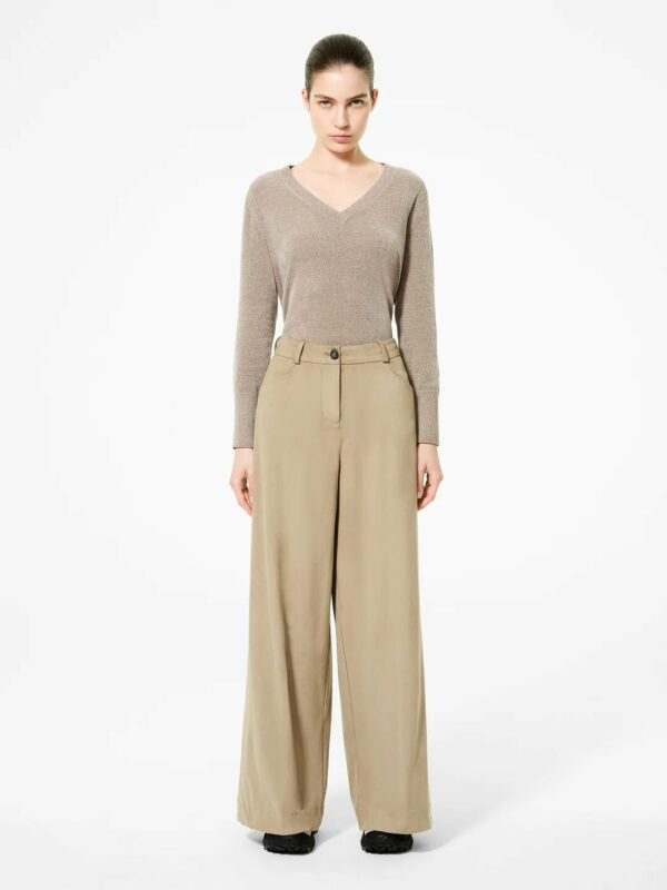 Coniugando disinvoltura e ricercatezza, questi pantaloni palazzo si distinguono per una linea fluida che avvolge la figura con eleganza, offrendo al tempo stesso comfort e libertà di movimento. Il tessuto eco suede elasticizzato, dal raffinato effetto nabuk, dona al capo un aspetto vellutato e una sensorialità morbida al tatto. La costruzione sartoriale, definita dalla vita regolare, dalle tasche alla francese e dalla sottile cintura con passanti, valorizza la silhouette con sobrietà. Proposti in una palette di tonalità stagionali, questi pantaloni si prestano con naturalezza alla creazione di look versatili e distintivi. Ideali per il quotidiano, rivelano tutta la loro versatilità se abbinati a una maglia in ciniglia dal taglio nitido e al Montecristo Thermo Parka Jkt, per un insieme che unisce stile urban e funzionalità.
