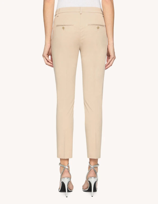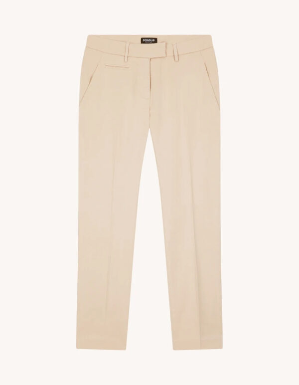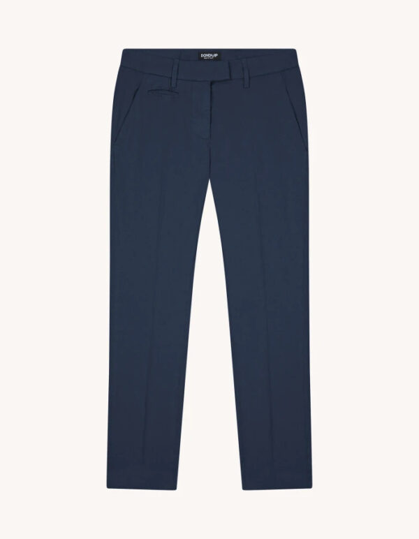 Pantaloni Perfect cropped slim chino, vita regolare, tasche a filetto posteriori. Gabardina di cotone leggera. Tintura in capo. Logo Dondup. Made in Italy
