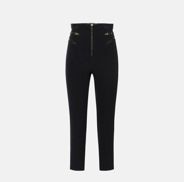 Pantaloni in crêpe dalla vestibilità aderente. Si distinguono per gli elementi decorativi come le zip e i filetti in tono che accentuano il punto vita. Le impunture centrali donano struttura e definizione. Lunghezza alla caviglia.