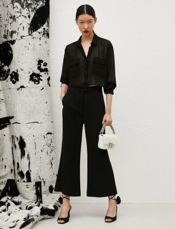 Flare per slanciare ogni silhouette, fluidi per affascinare ogni sguardo. I pantaloni in crêpe sono un vero must have per ogni guardaroba. Il capo fa parte della capsule seasonless Marella ART.365.