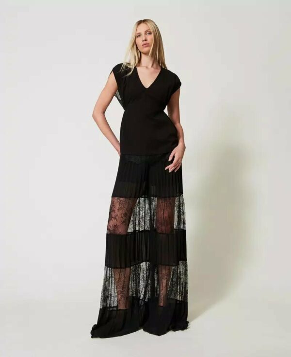 Pantalone in georgette plissè con pizzo twin set pe25 art. 251tp2782