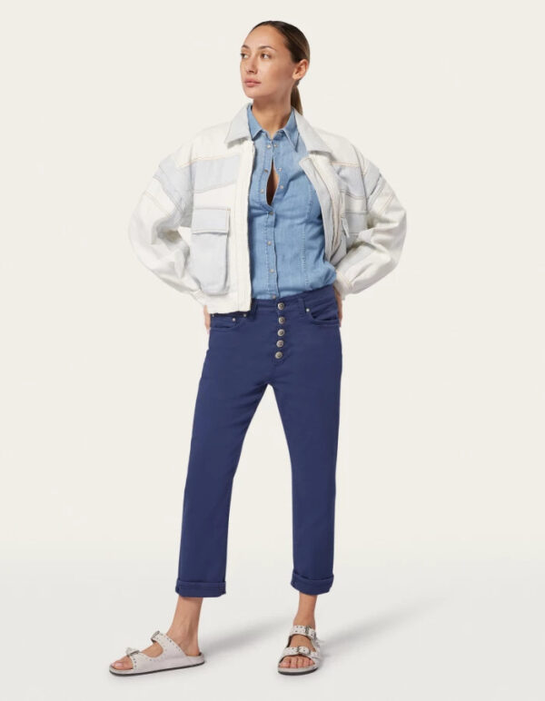 Pantaloni Koons cinque tasche loose fit, vita regolare, bottoniera gioiello e lunghezza alla caviglia. Armatura lyocell e cotone leggero. Tintura in capo. Logo Dondup. Made in Italy